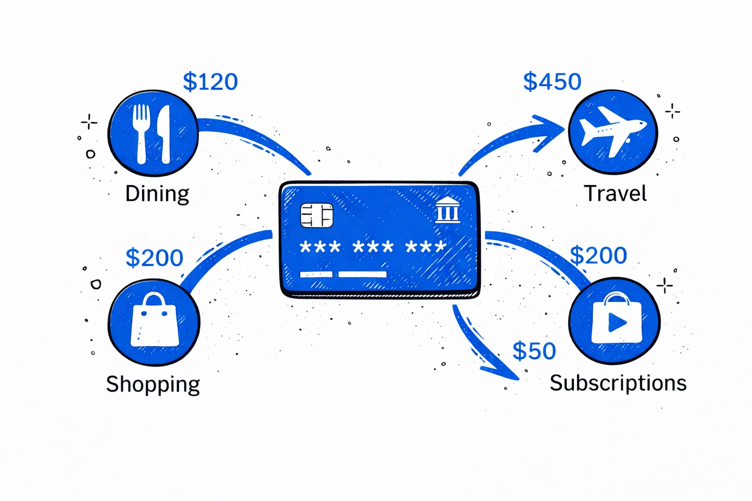 Track business credit card spending by category for bookkeeping or tax prep.