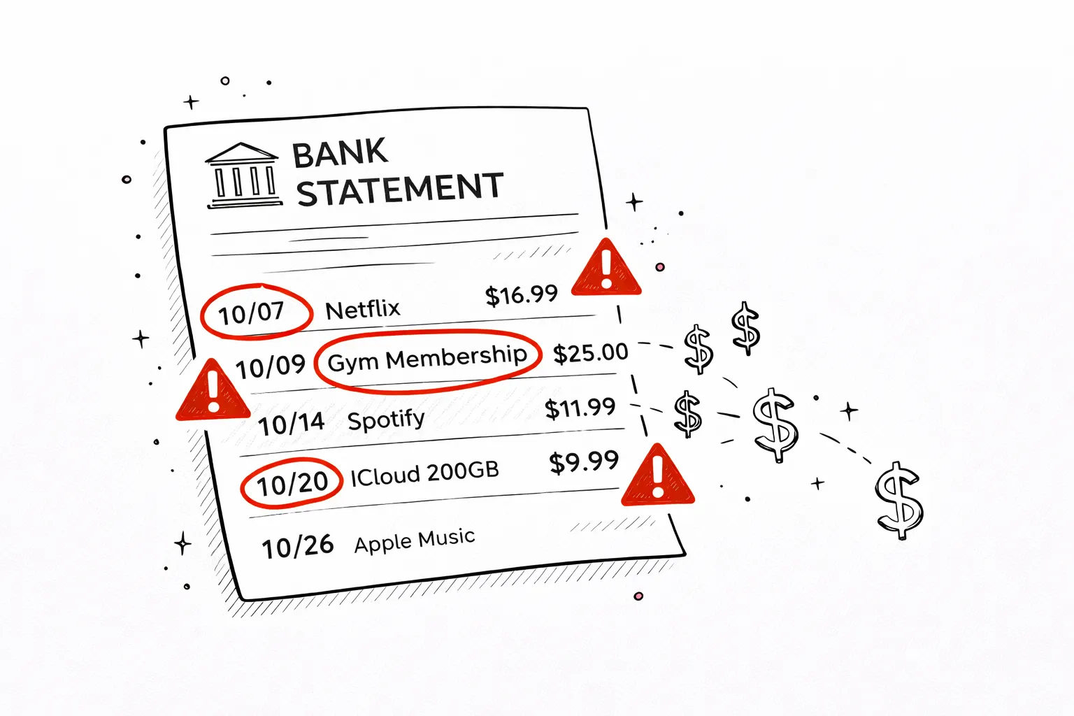 Free trials convert silently. Gym memberships auto-renew in January. Cloud storage upgrades from two years ago keep charging. The average person underestimates their monthly subscription spending by 2–3×.